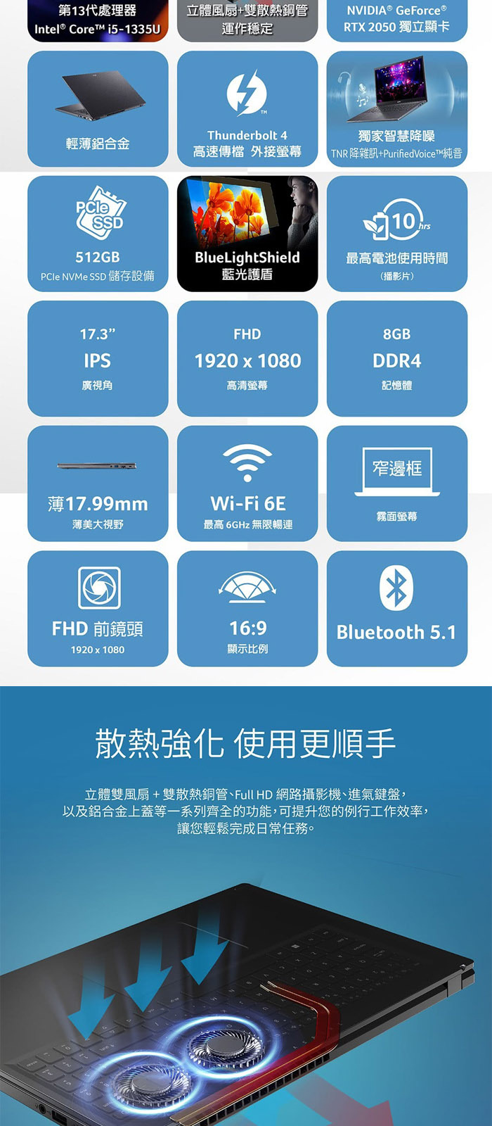 ●處理器:Intel Core i5-1335U/1.3 GHz/4.6 GHz