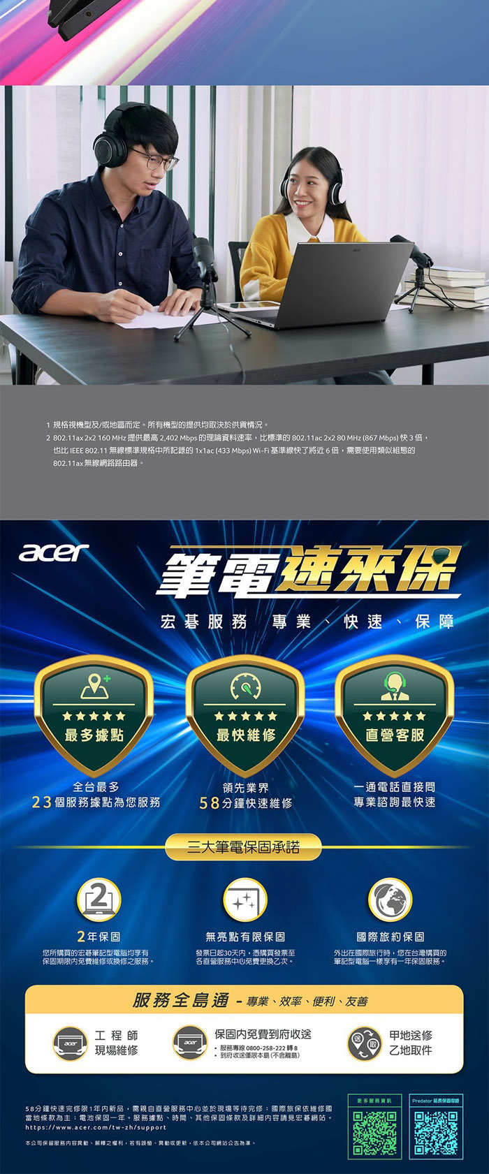 ●無線規格:Wi-Fi 6E 802.11 a/b/g/n/ac/ax 2.4 GHz/5 GHz/6 GHz三頻段 2x2 MU-MIMO