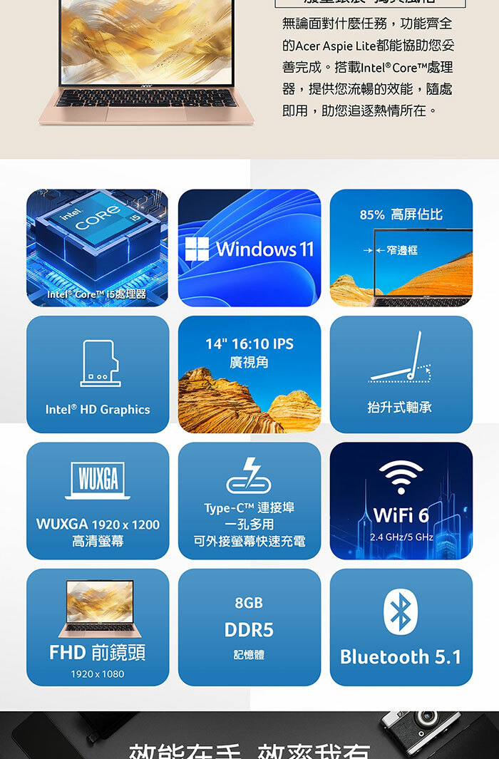 ●處理器:IntelR Core? i5-1334U clock/Turbo:1.3 GHz/4.6 GHz Cores/Threads:10/12 Smart Cache:12 MB