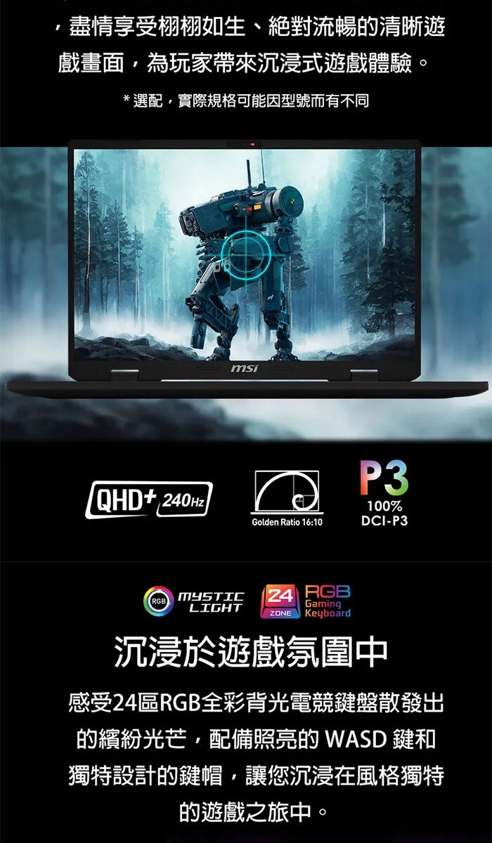●螢幕尺寸:18” QHD+ (2560x1600), 240Hz, IPS-Level