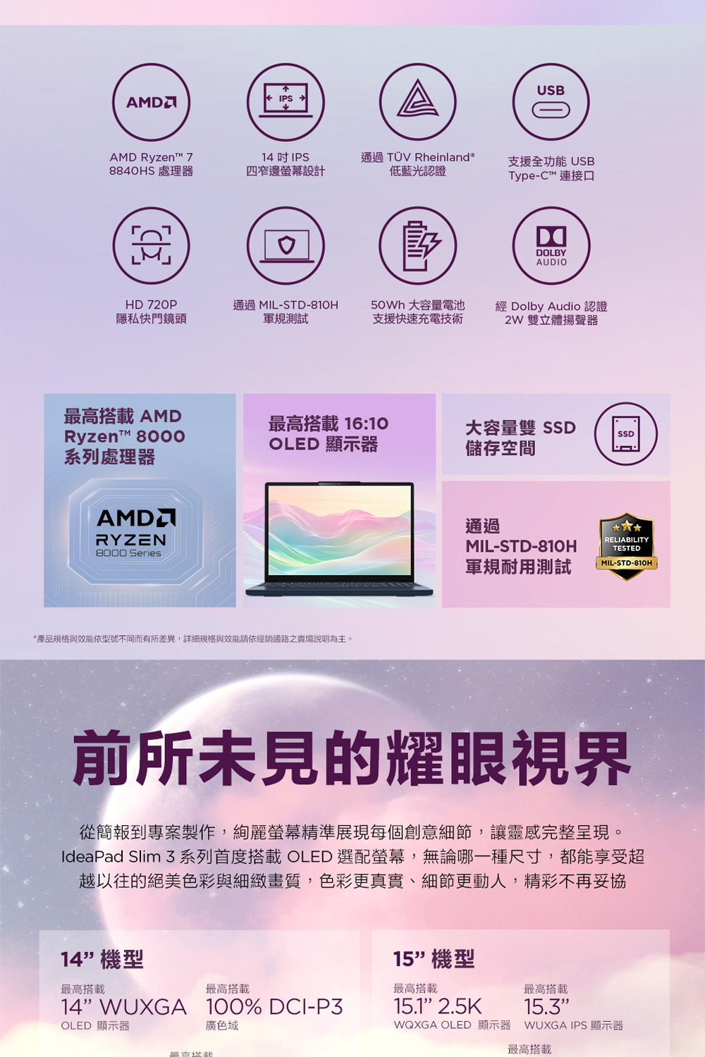 ●型號:IdeaPad Slim 3 14AHP10 83K90011TW