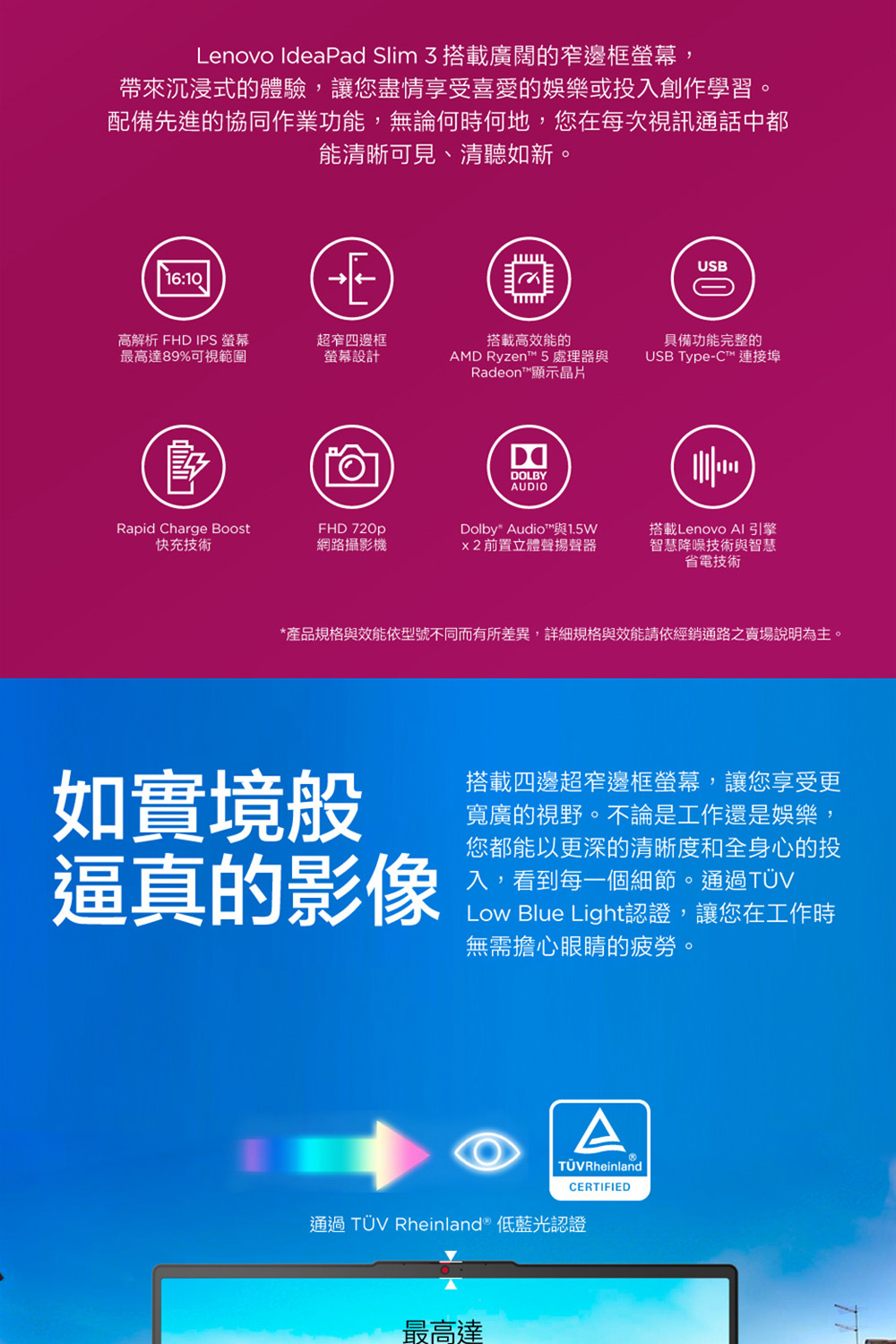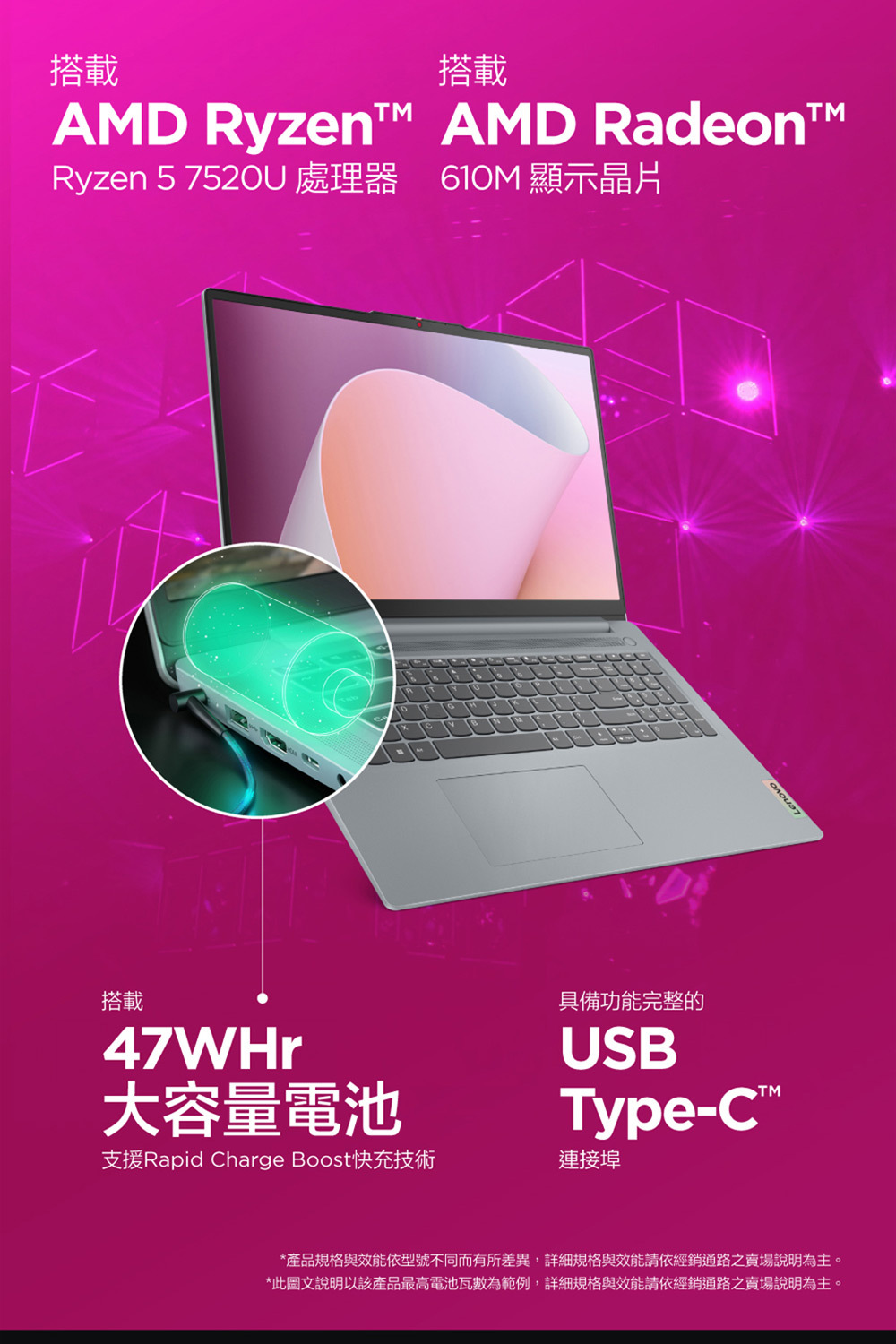 ●型號:IdeaPad Slim 3 15AMN8 82XQ00TGTW