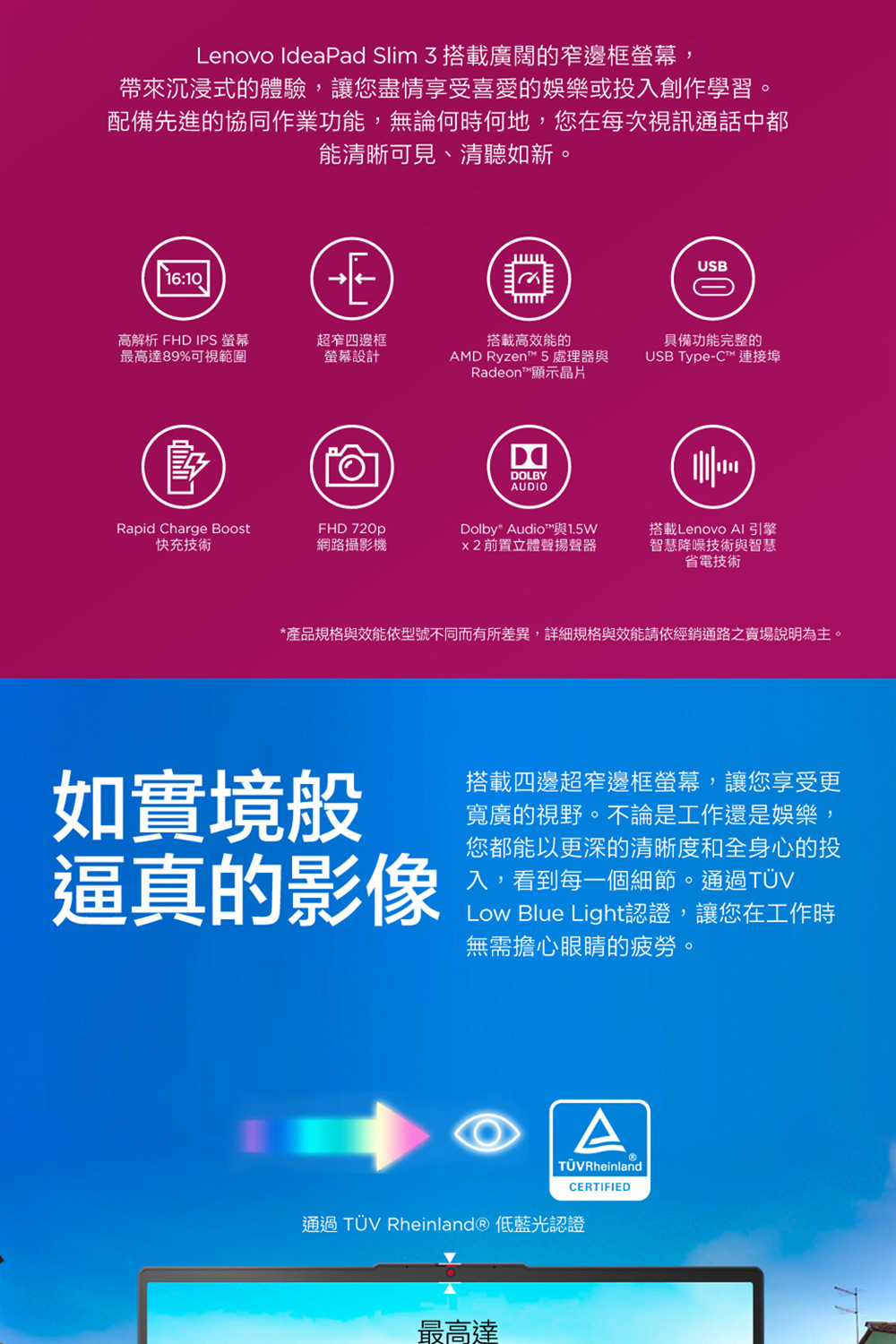 ●型號:IdeaPad Slim 3 15AMN8 82XQ00TFTW