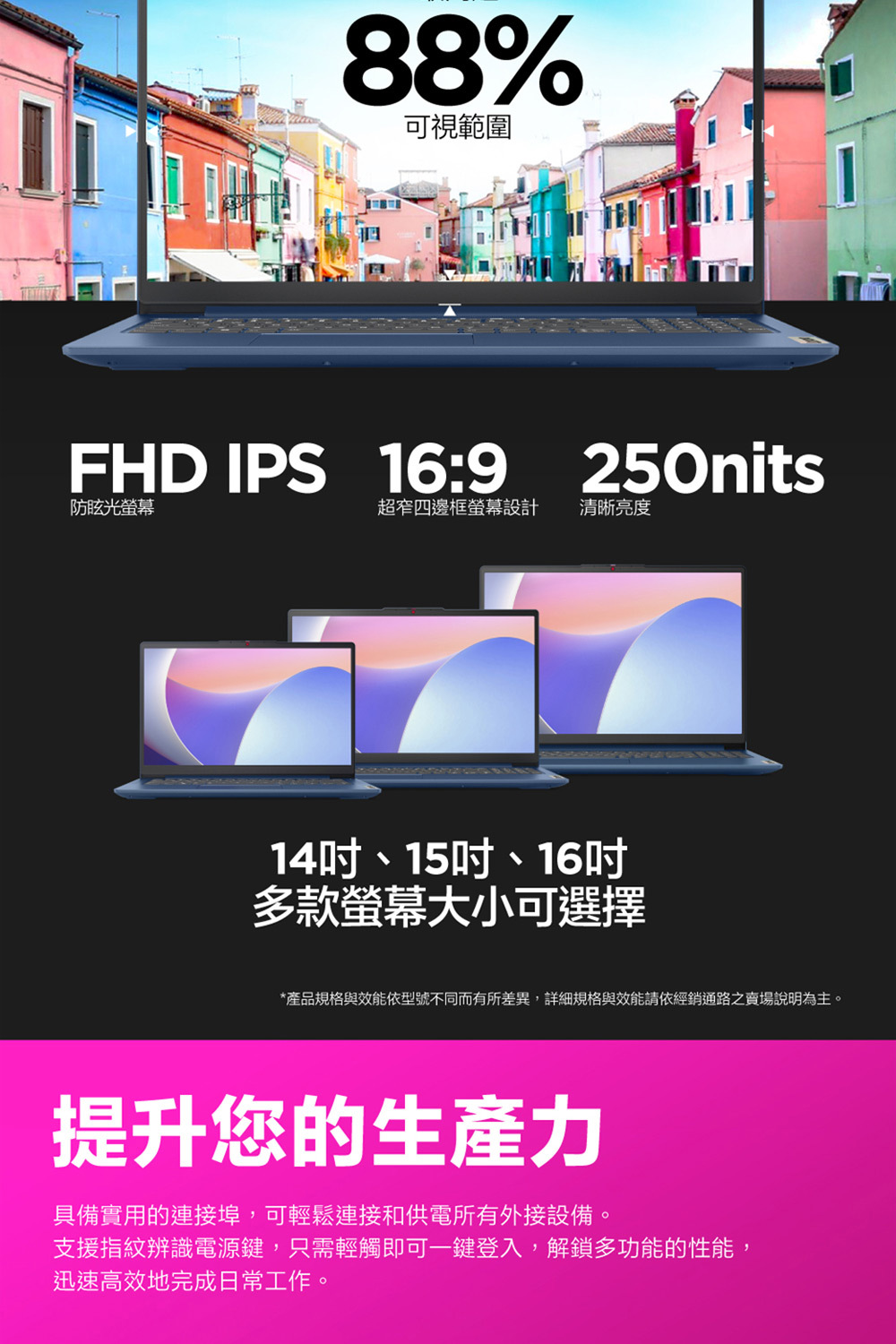 ●螢幕尺寸:15.6" FHD (1920x1080) TN 250nits Anti-glare