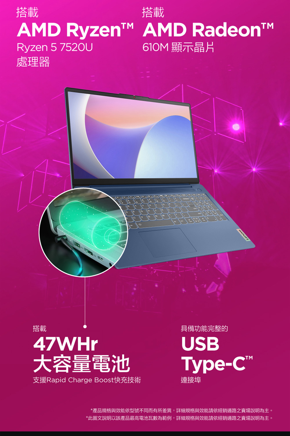 ●處理器:AMD Ryzen™ 5 7520U