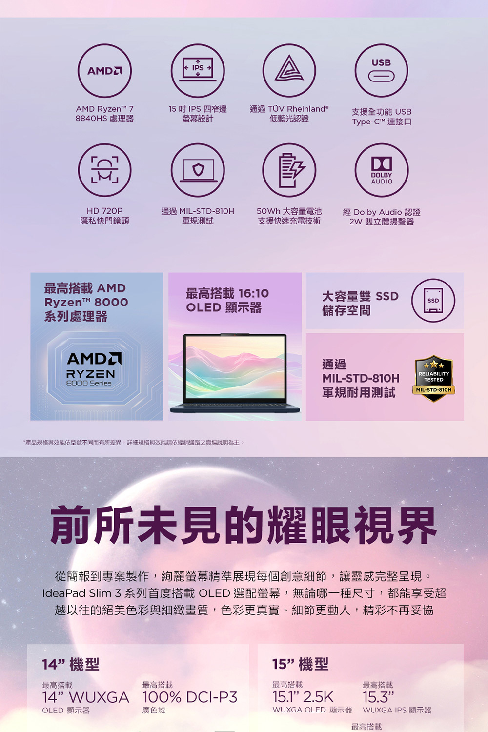 ●處理器:AMD Ryzen™ 7 8840HS 8C