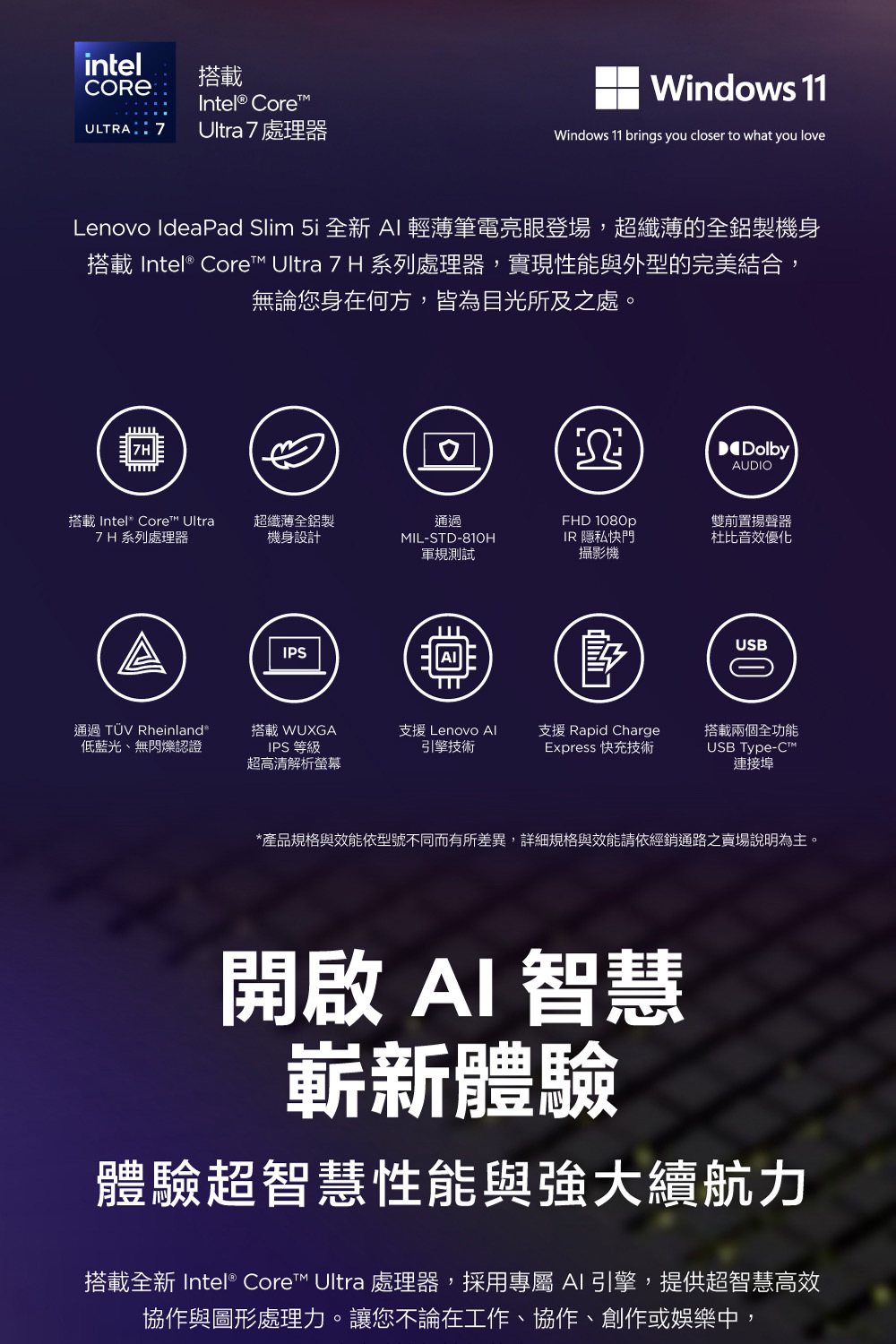 ●顯示卡:Integrated Intel® Arc™ Graphics