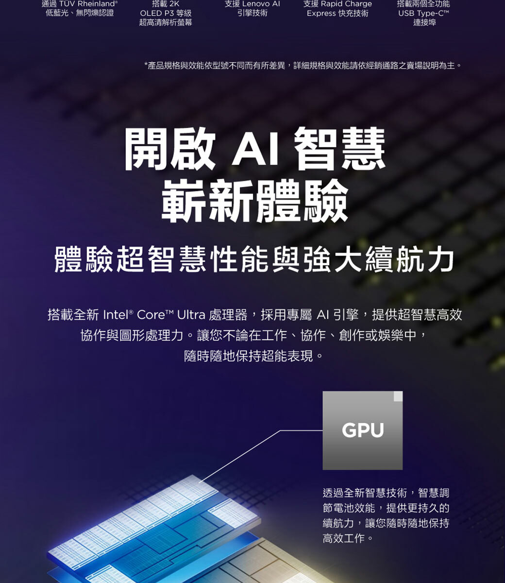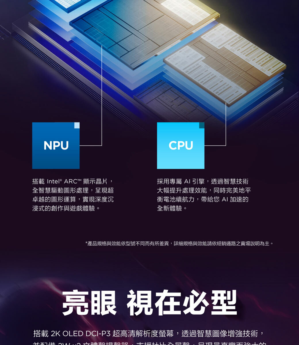 ●顯示卡:Integrated Intel® Arc™ Graphics