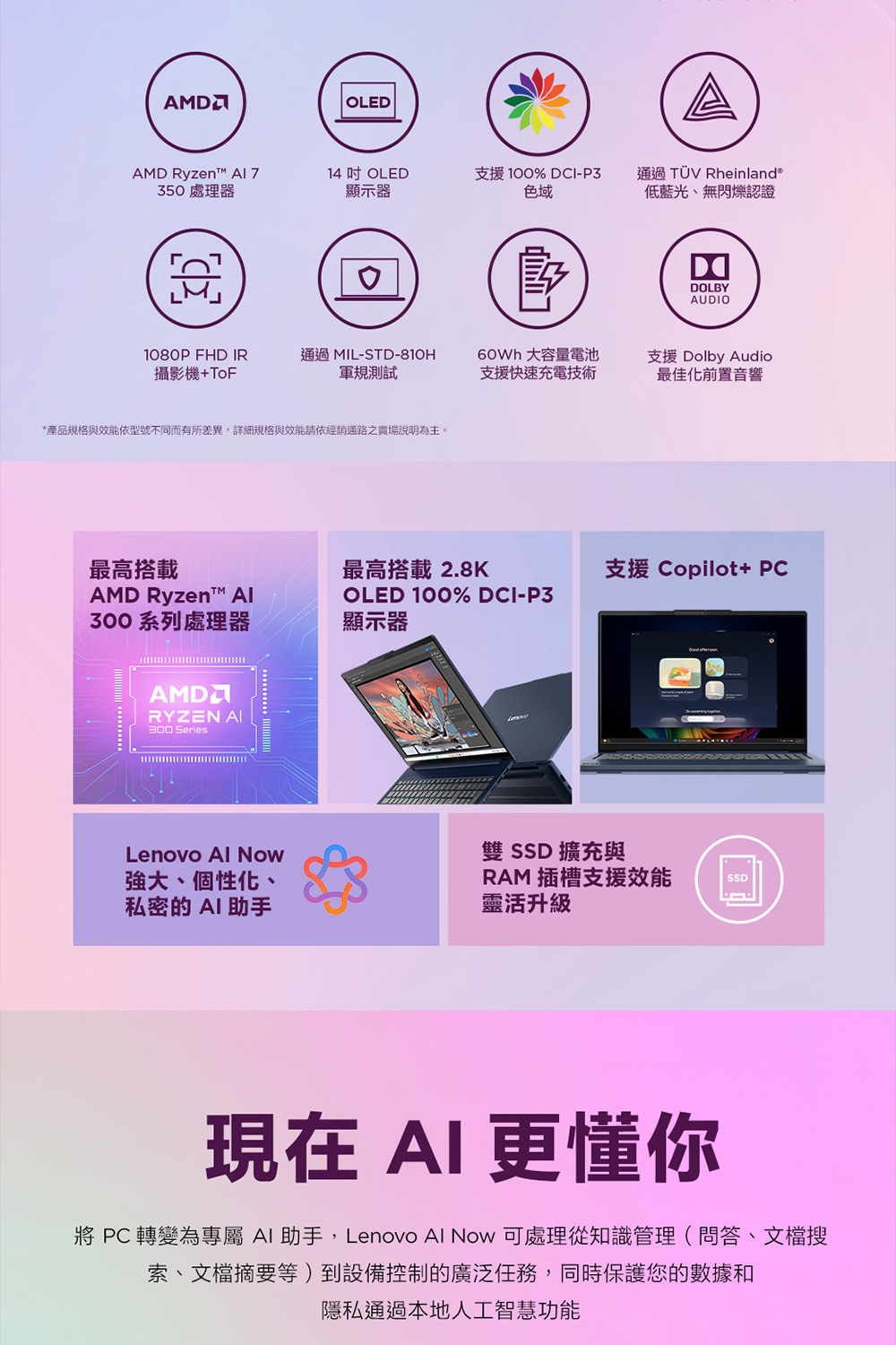 ●處理器:AMD Ryzen™ AI 7 350 8C