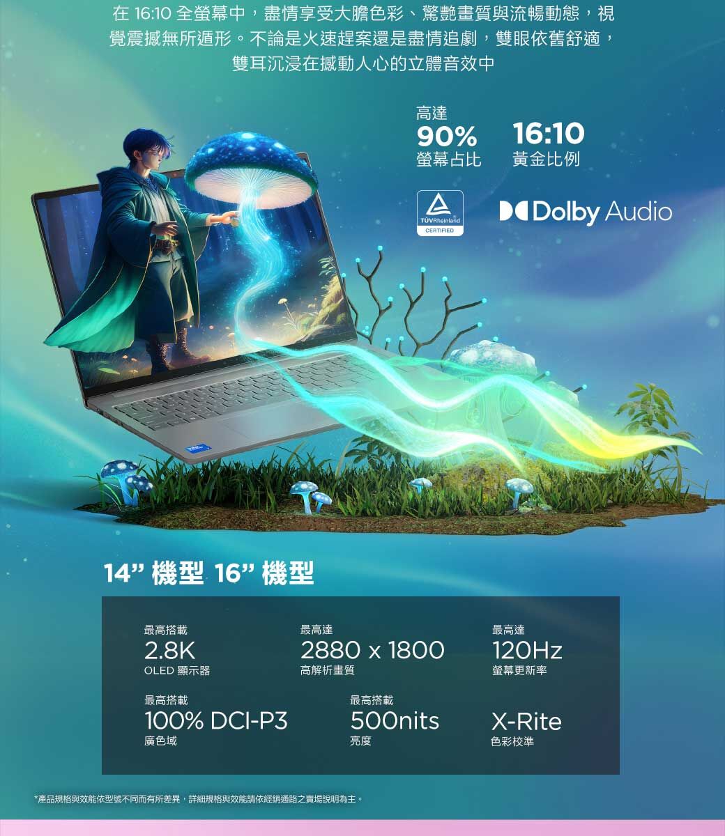 ●螢幕尺寸:14" WUXGA (1920x1200) OLED 400nits Glossy, 100% DCI-P3, DisplayHDR™ True Black 500