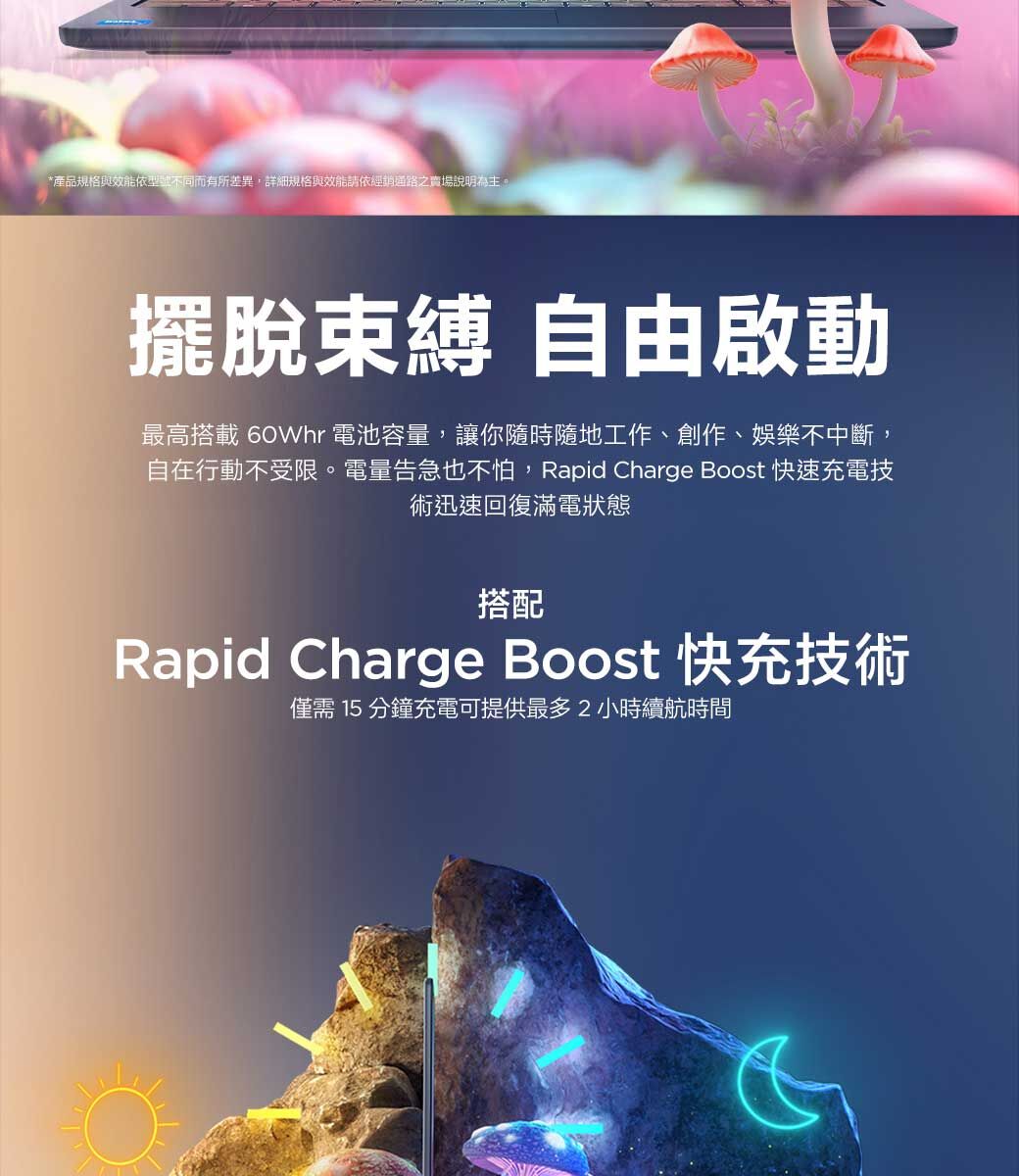 ●處理器:Intel® Core Ultra 7 255H, 16C (6P + 8E + 2LPE) / 16T, Max Turbo up to 5.1GHz, 24MB
