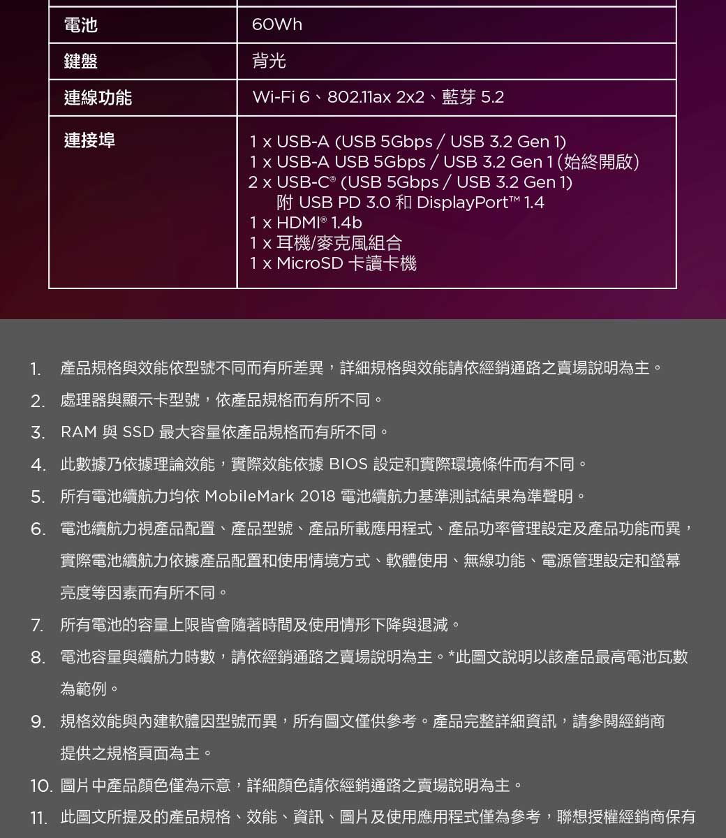 備註:以上規格僅供參考,如有任何問題,請依原廠公告為主。