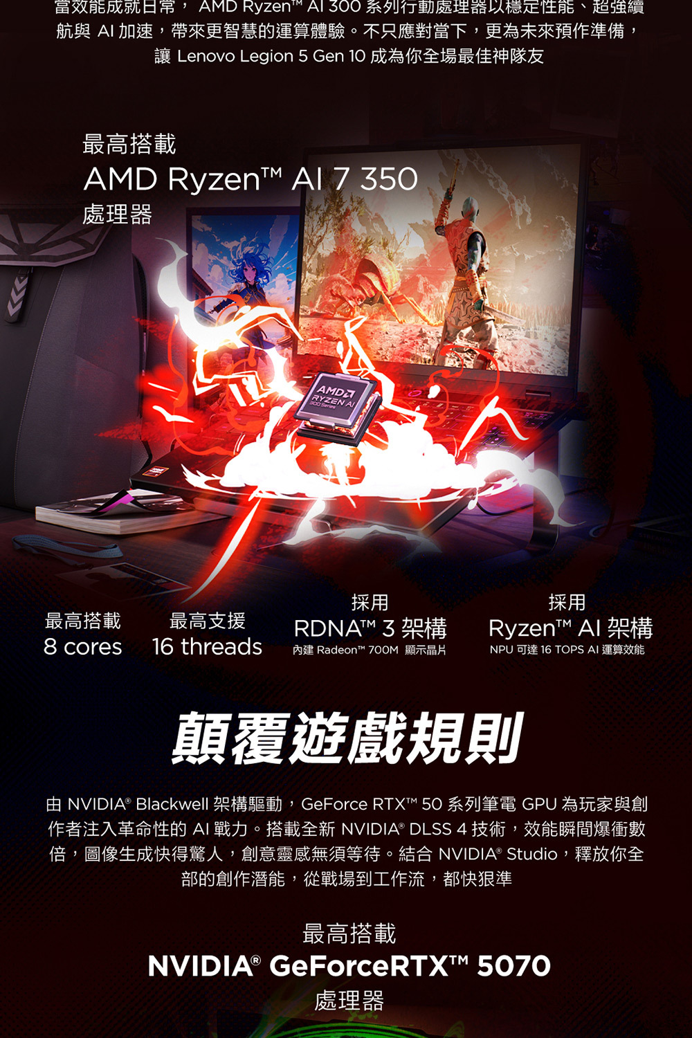 ●處理器:AMD Ryzen™ AI 7 350, 8C