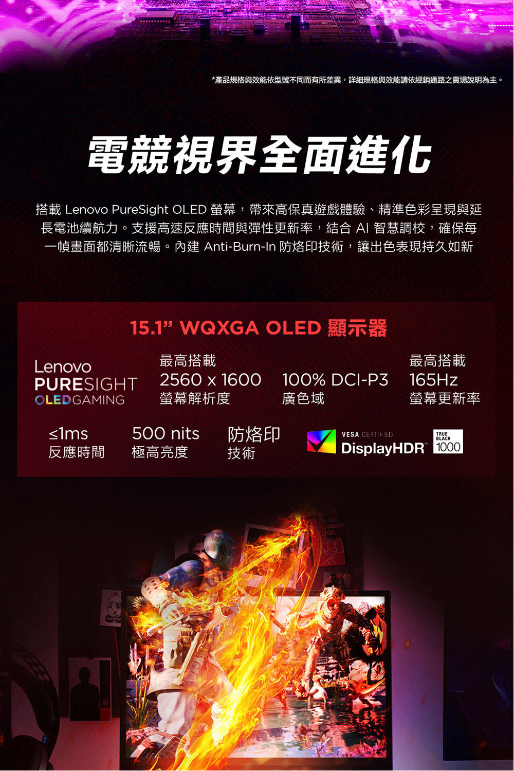 ●螢幕尺寸:15.1" WQXGA (2560x1600) OLED 500nits Glossy, 100% DCI-P3, Dolby Vision®, DisplayHDR™ True Black 600, 165Hz