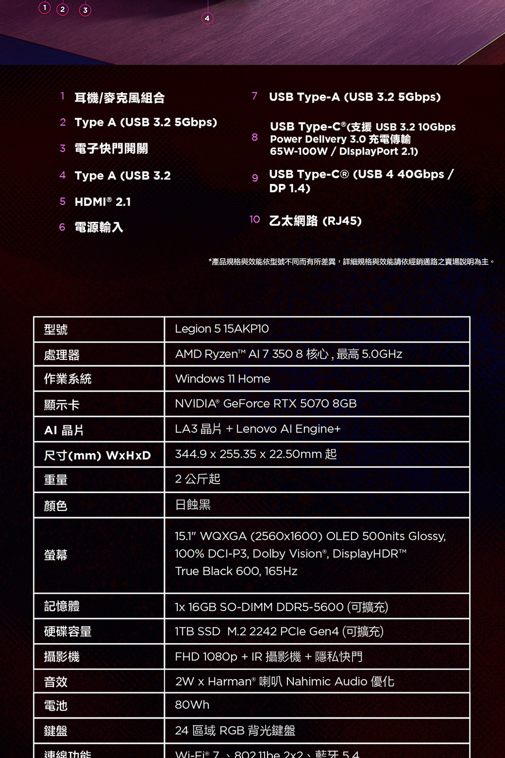 備註:以上規格僅供參考,如有任何問題,請依原廠公告為主。