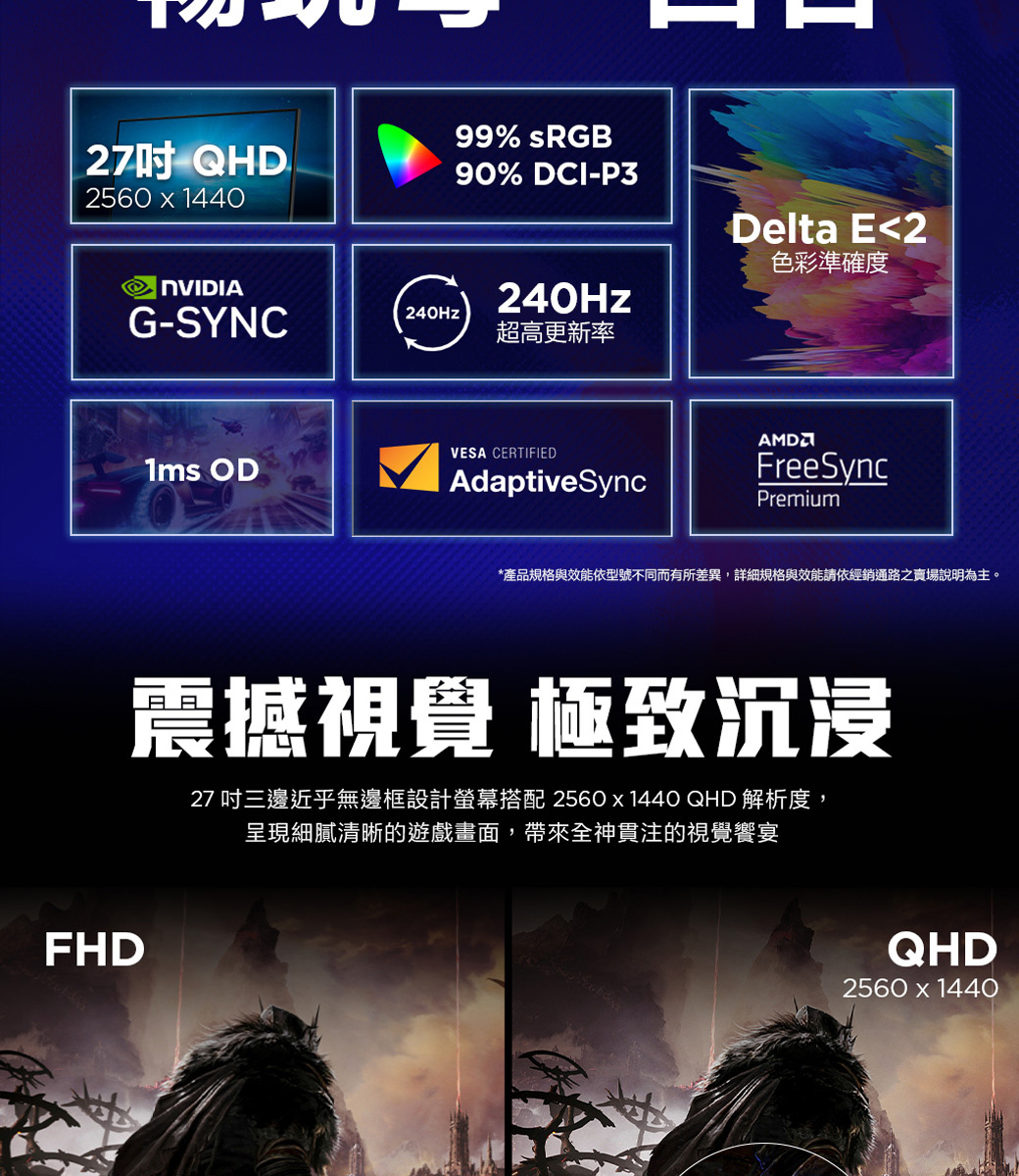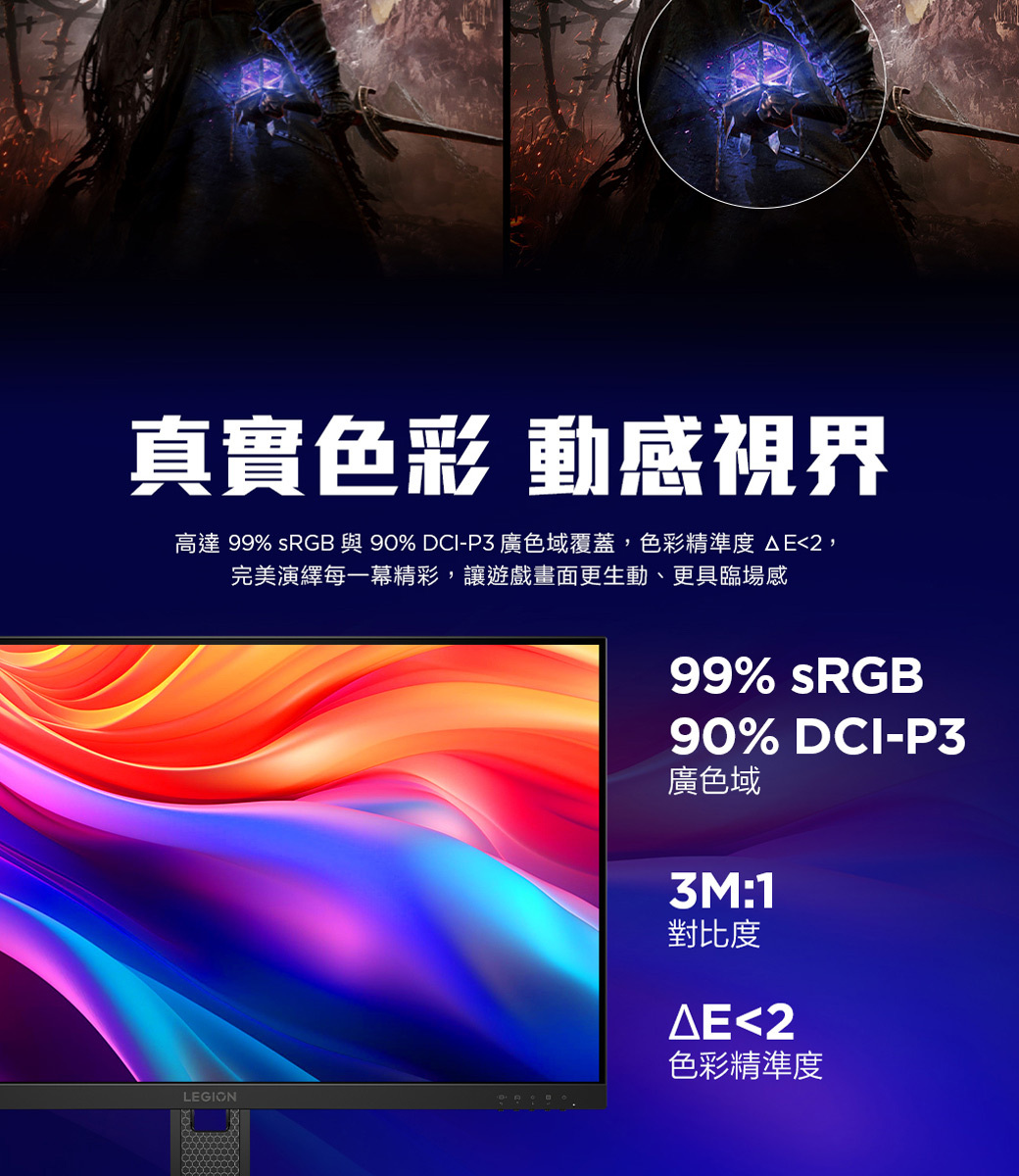 ●色彩覆蓋:99% sRGB, 90% DCI-P3