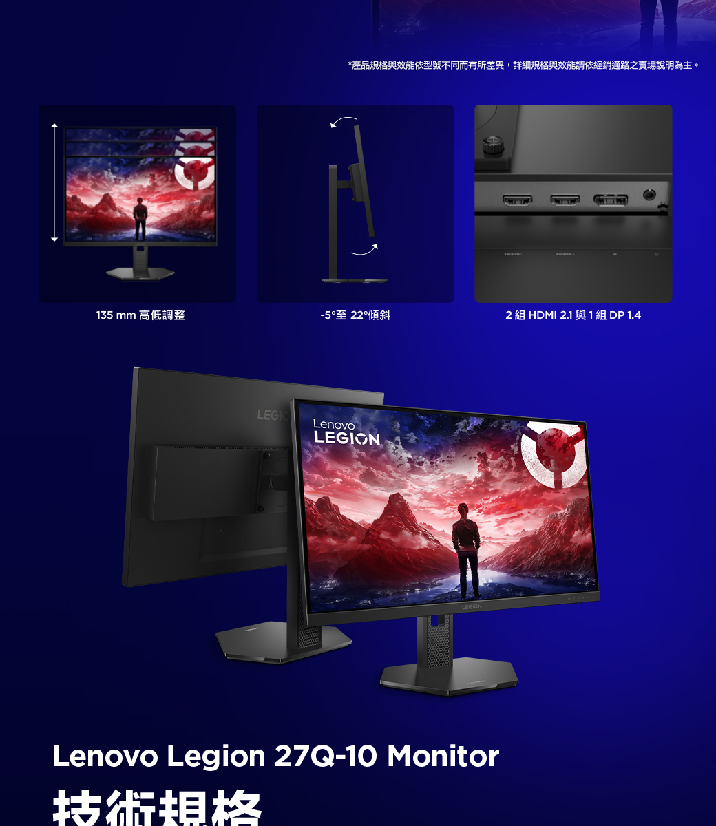 ●型號:Lenovo Legion 27Q-10 27"顯示器(68C6GAC4TW)