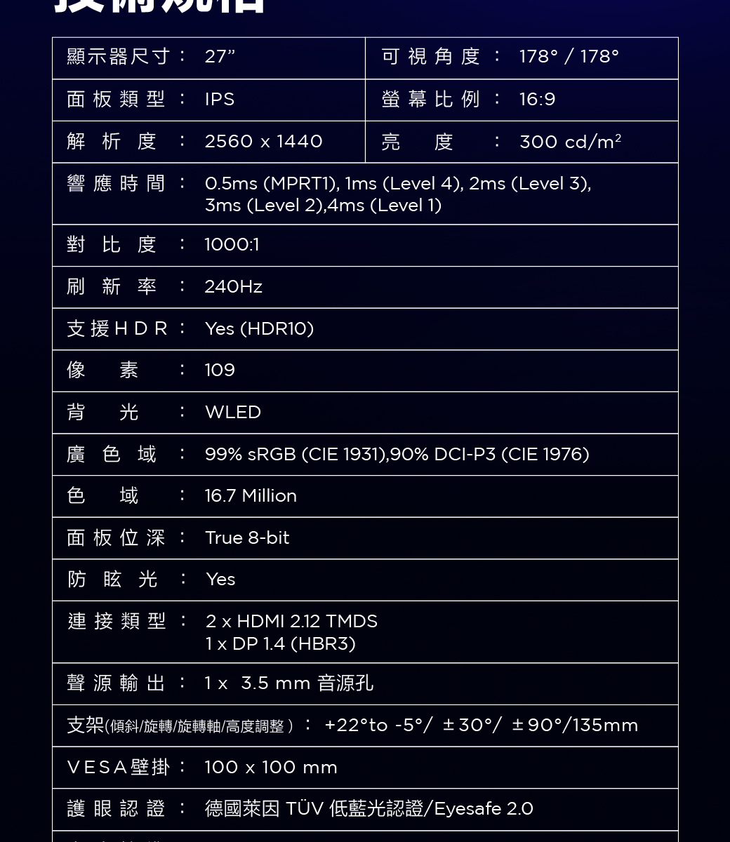備註:以上規格僅供參考,如有任何問題,請依原廠公告為主。