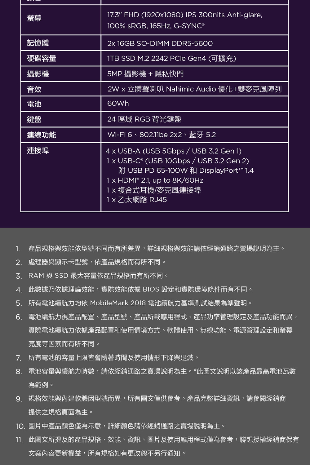 ●螢幕:17.3吋FHD (1920x1080) IPS/165Hz