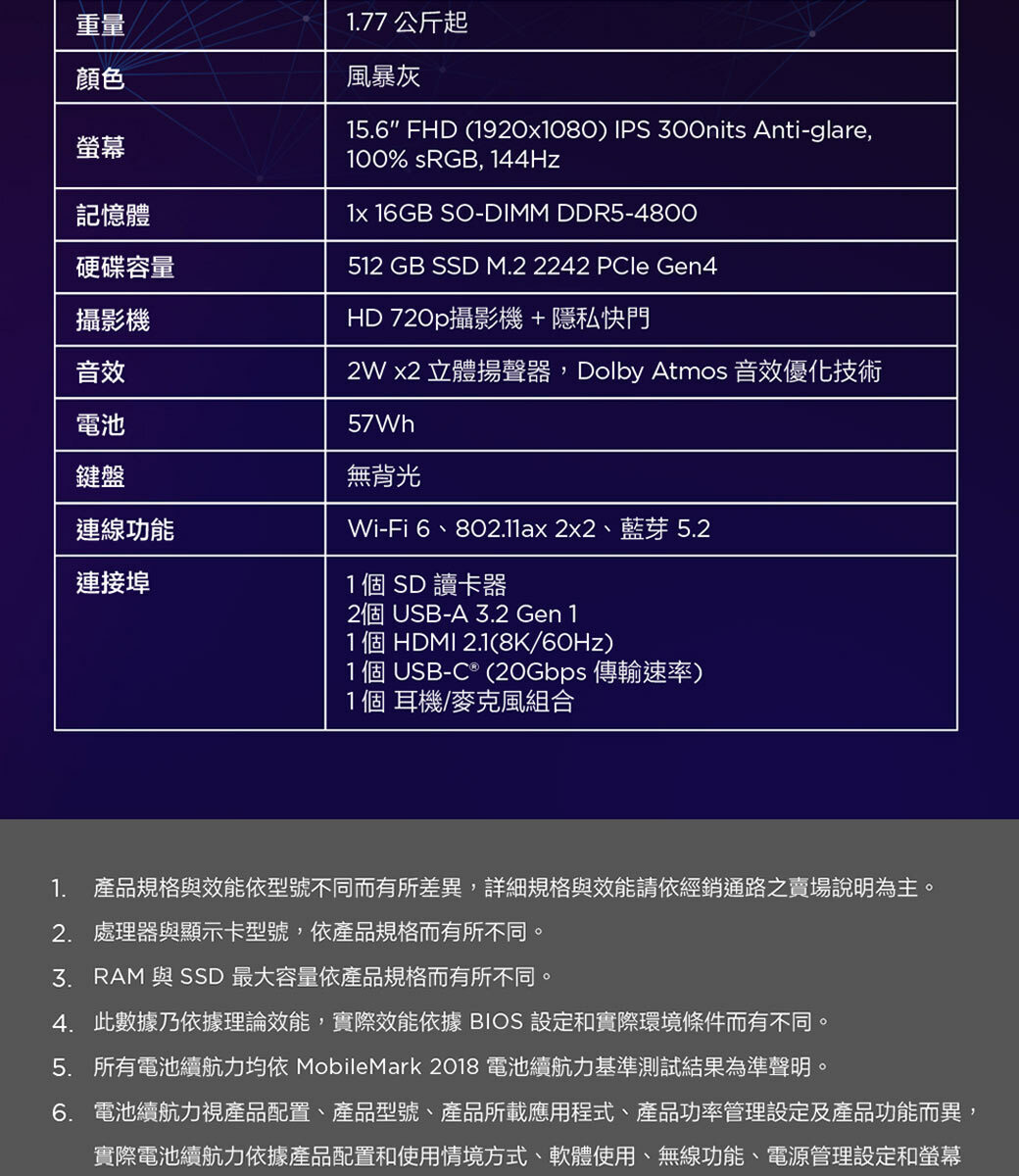 ●螢幕:15.6吋FHD (1920x1080) IPS/144Hz