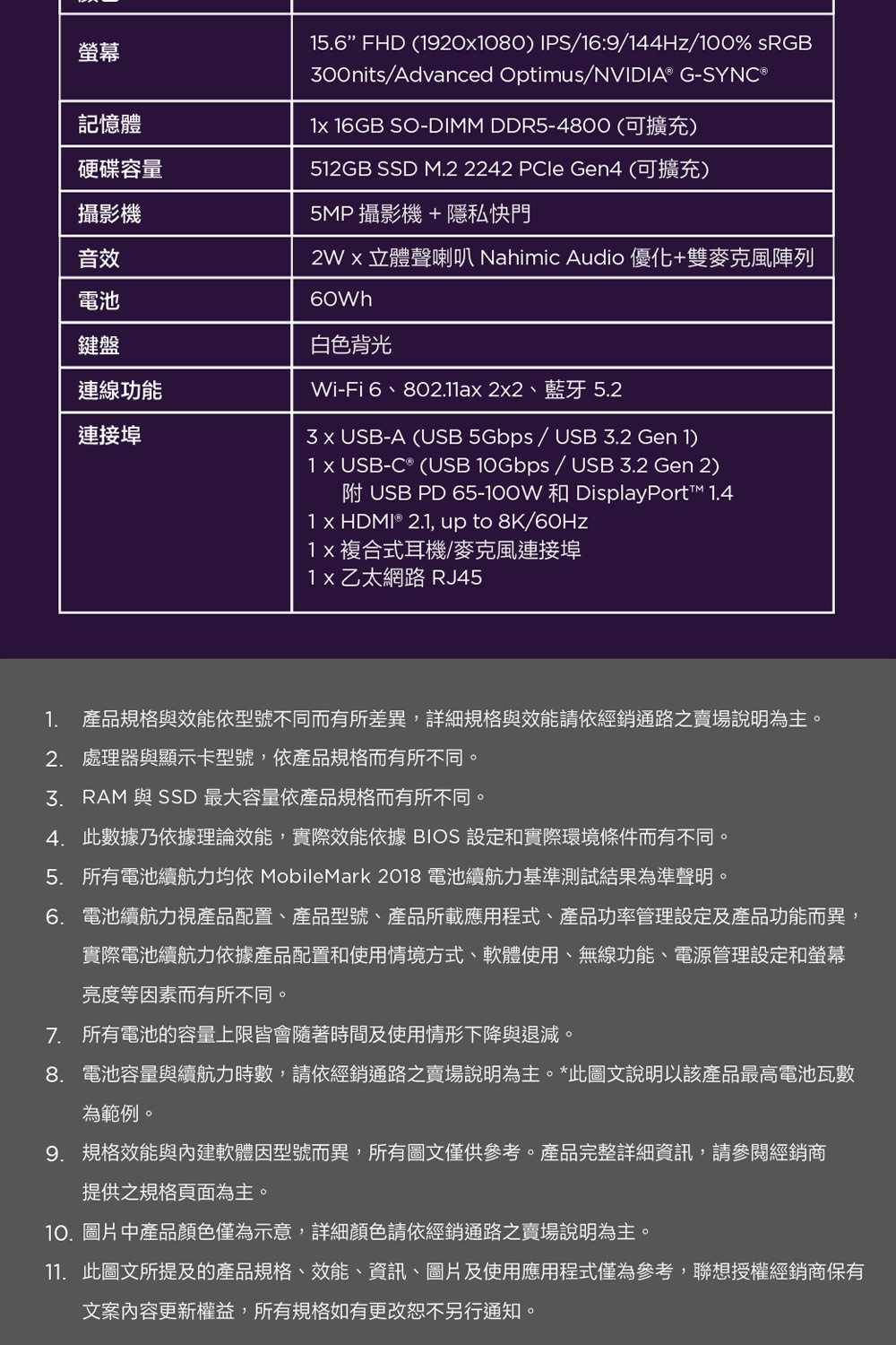 ●螢幕:15.6吋FHD (1920x1080) IPS/144Hz