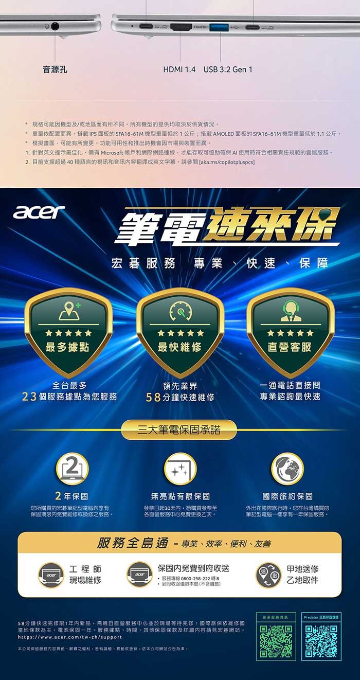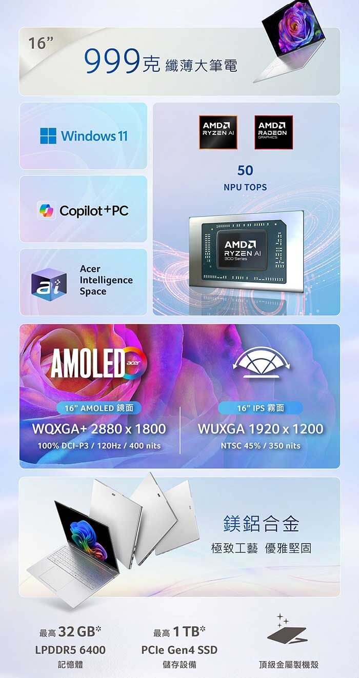 ●記憶體:32GB LPDDR5X Onboaed / 記憶體無法擴充