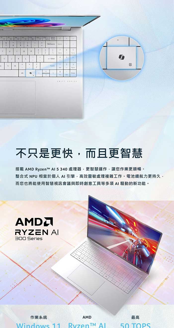 ●處理器:AMD Ryzen? AI 5 340 6核/12緒 2.0GHz/4.8GHz 16MB快取