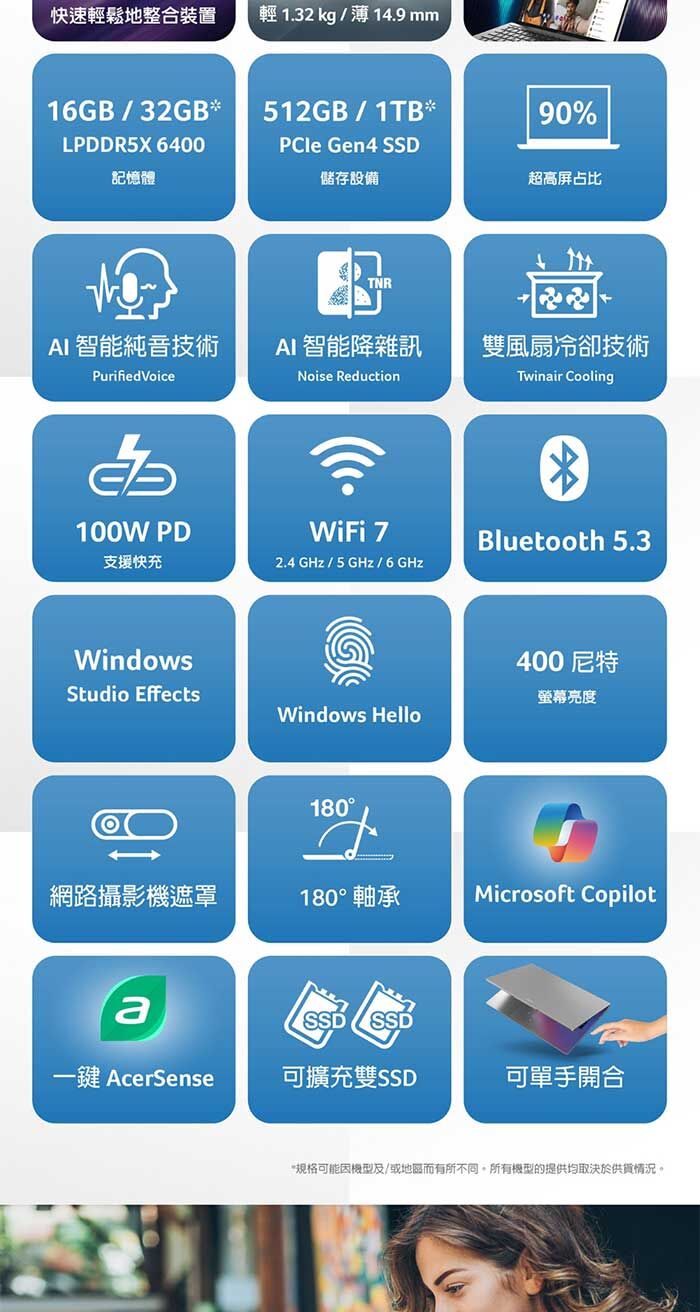 ●記憶體:32GB LPDDR5X Onboaed / 記憶體無法擴充