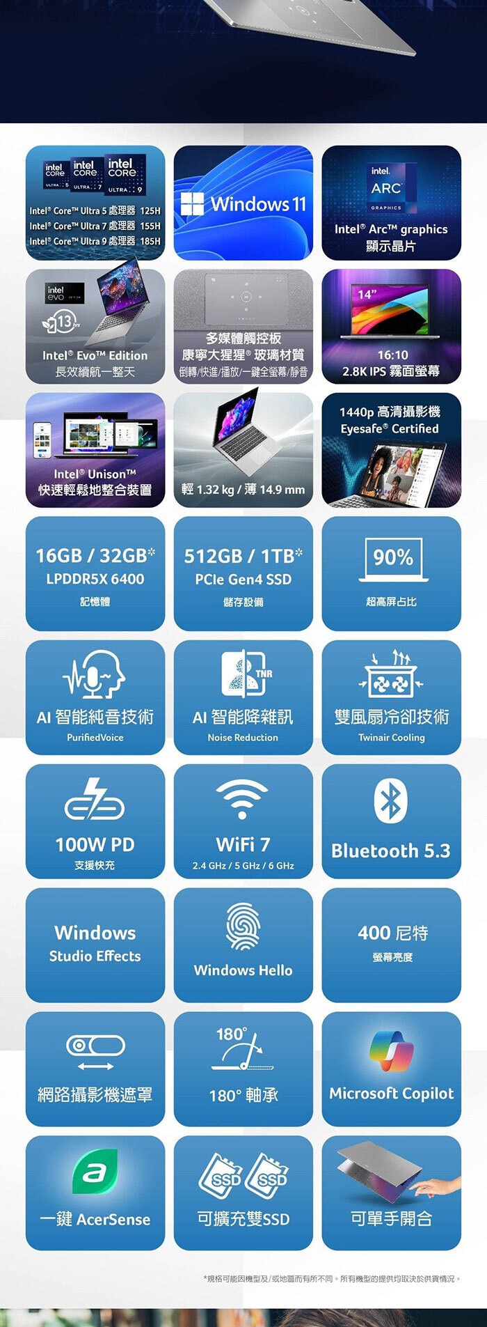 ●記憶體:32GB LPDDR5X(Onboard)
