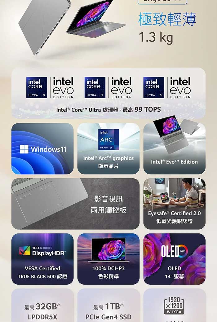 ●螢幕:14" 16:10/鏡面/OLED WUXGA 1920x1200 DCI-P3 100%/Adobe100% 400 nits