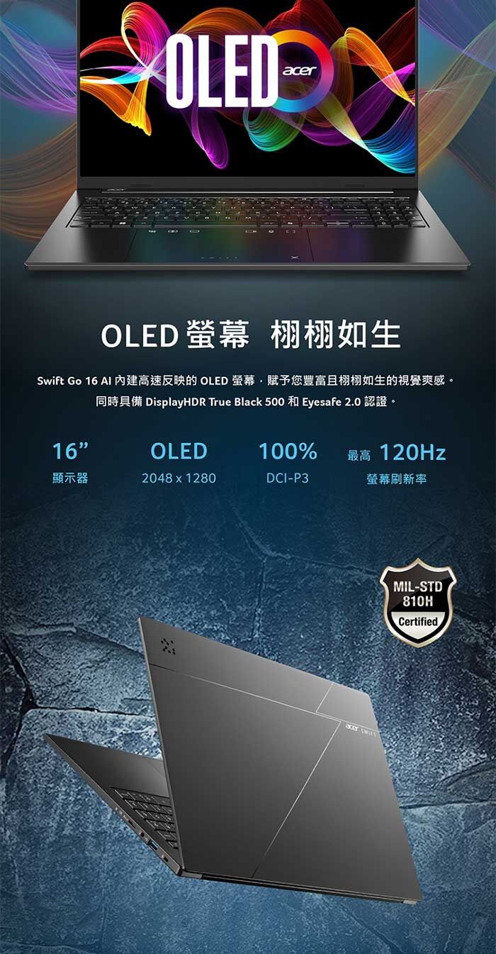 ●螢幕:16" 16:10/OLED/鏡面WUXGA+ 2048 x 1280DCI-P3 100%400 nits