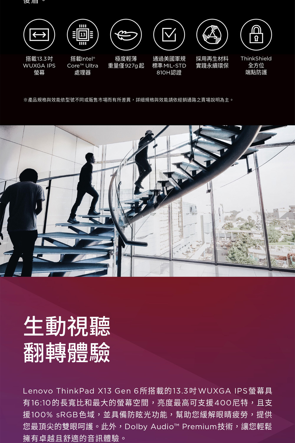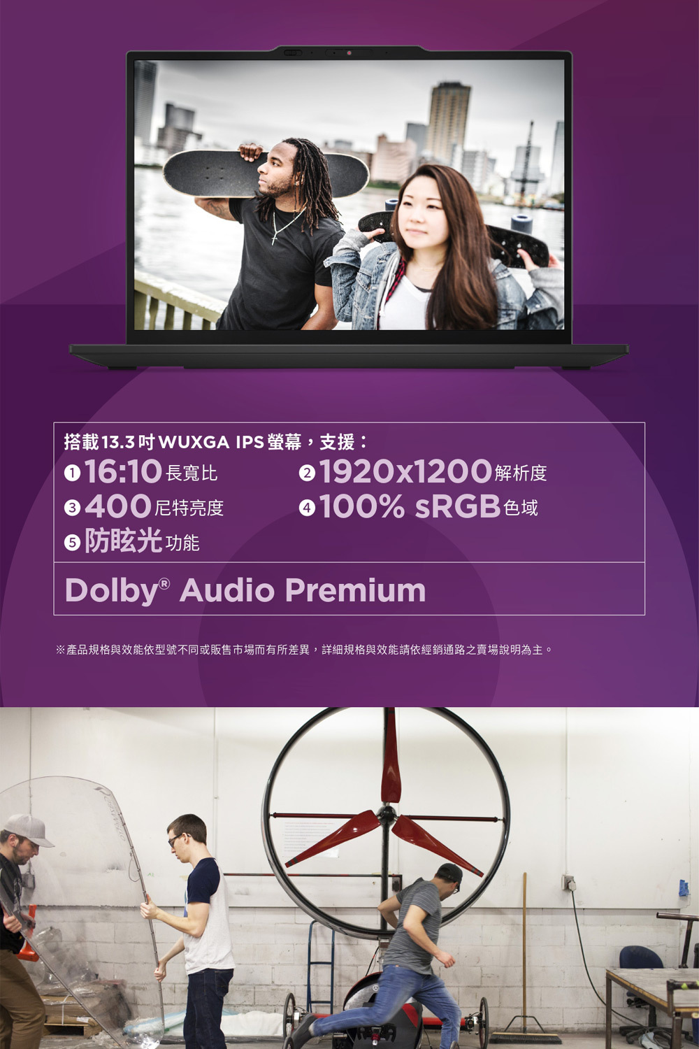 ●螢幕尺寸:13.3" WUXGA (1920x1200) IPS 400nits Anti-glare, 100% sRGB
