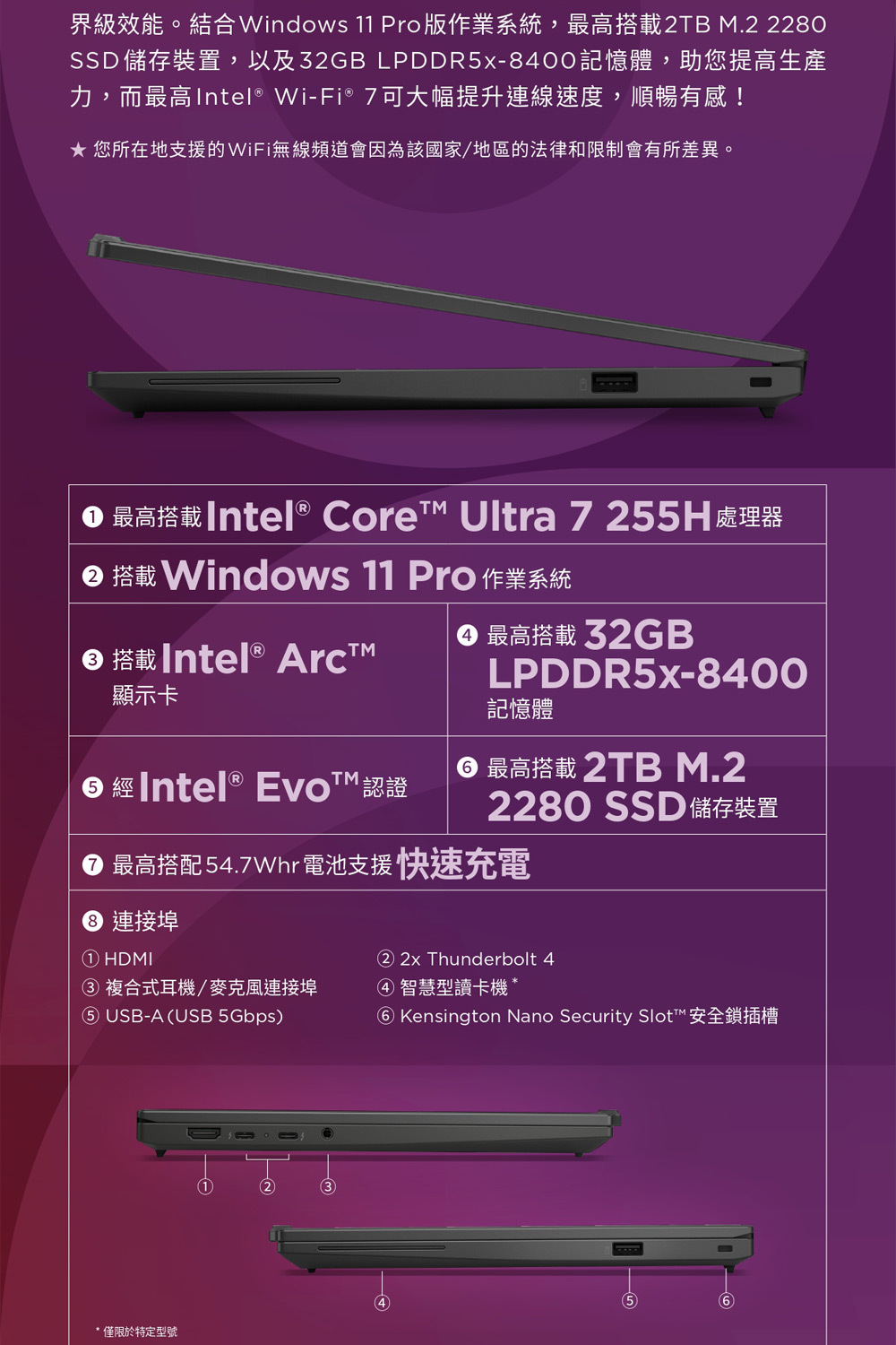 ●硬碟:1TB SSD M.2 2280 PCIe® 4.0x4 NVMe® Opal 2.0