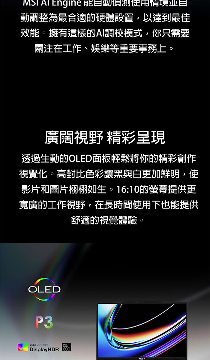 ●螢幕尺寸:16” 2K (2048x1280), 120Hz, OLED