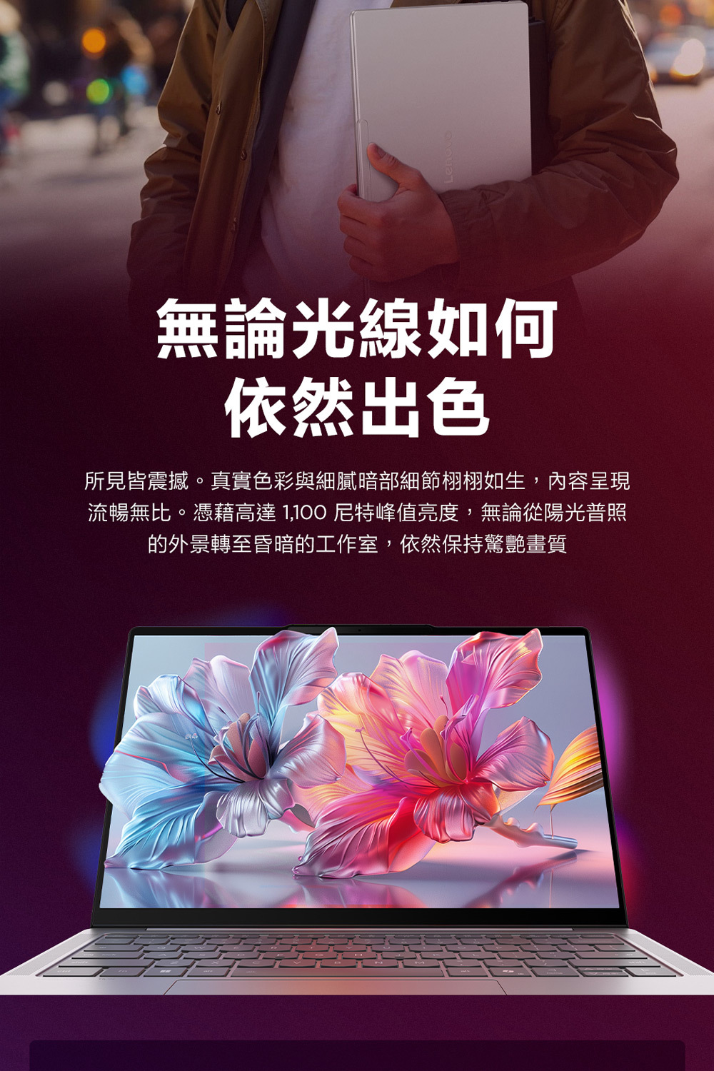 ●螢幕:14" 2.8K WQXGA+ (2880x1800) OLED 1100nits (peak) / 500nits (typical) Glossy / Anti-fingerprint, 100% DCI-P3, 120Hz, Eyesafe®, Dolby Vision®, DisplayHDR™ True Black 1000, Glass, Touch, X-Rite®, PureSight Pro