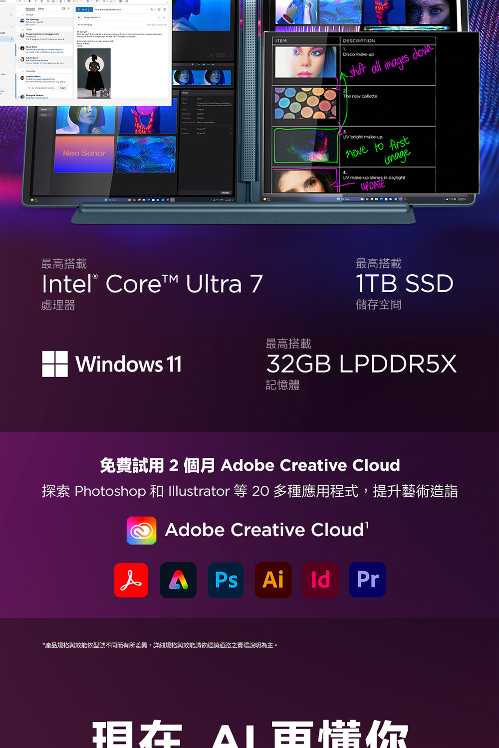 ●硬碟:1TB SSD M.2 2242 PCIe® 4.0x4 NVMe®
