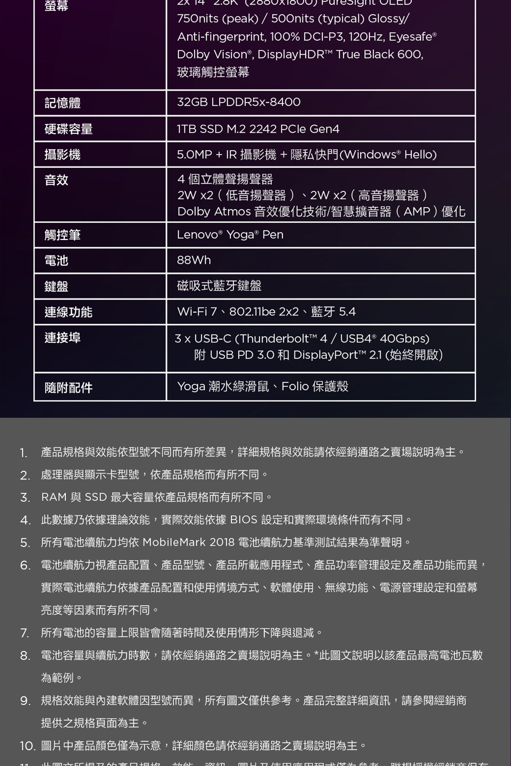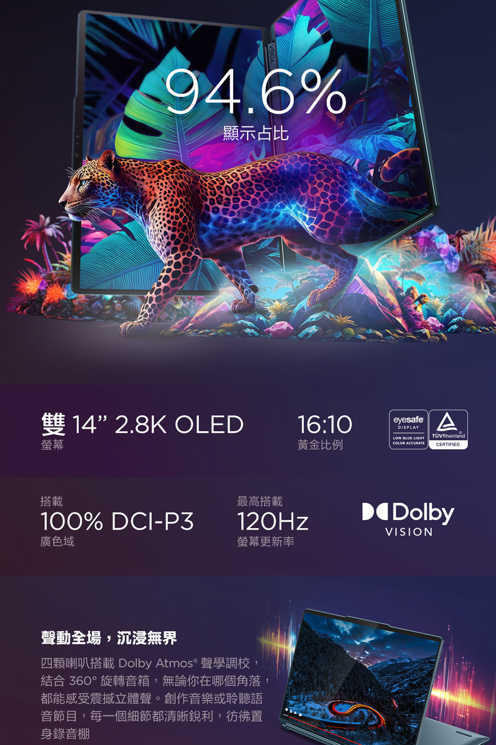 ●螢幕:2x 14吋2.8K WQXGA+ (2880x1800) OLED