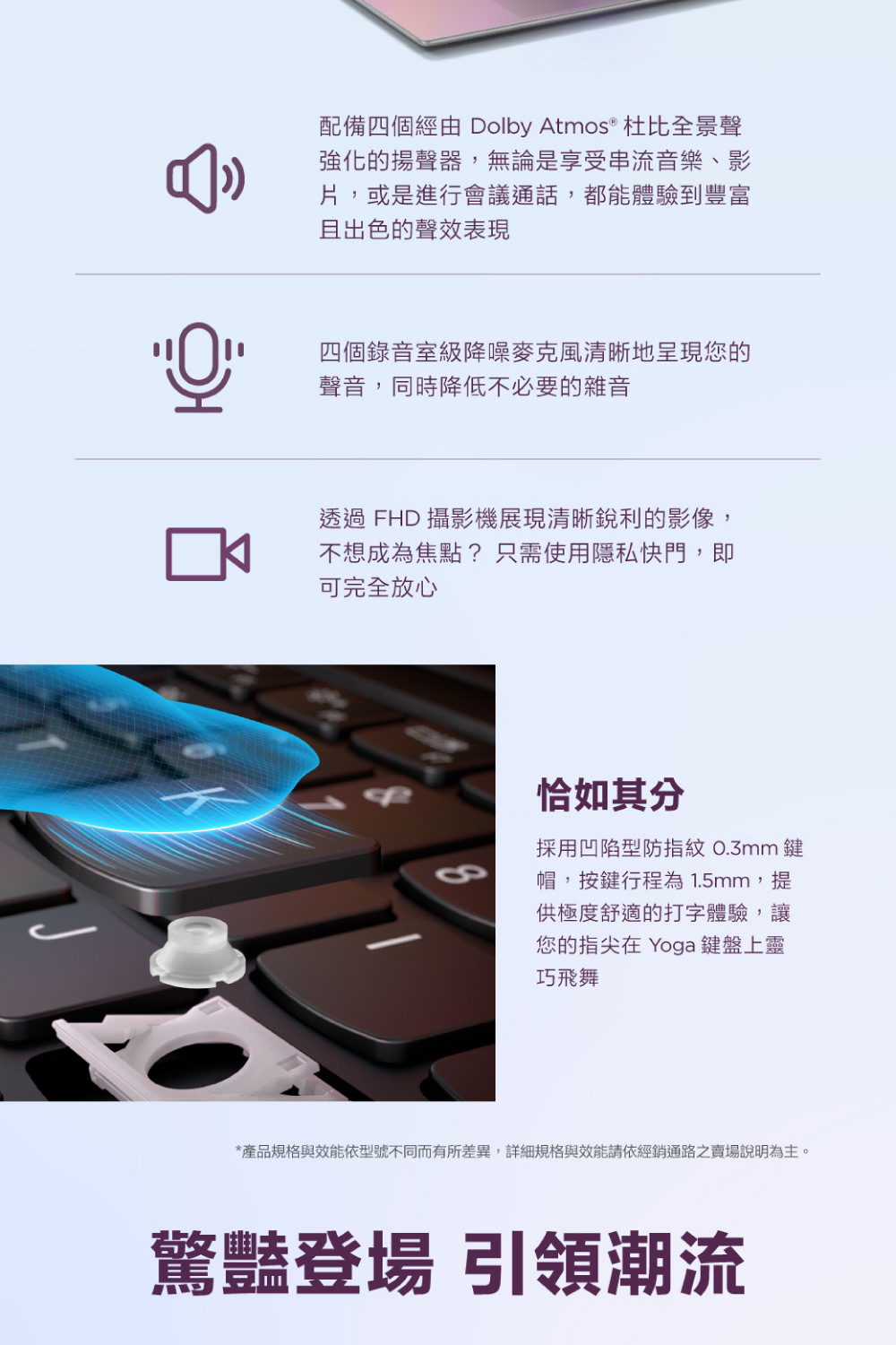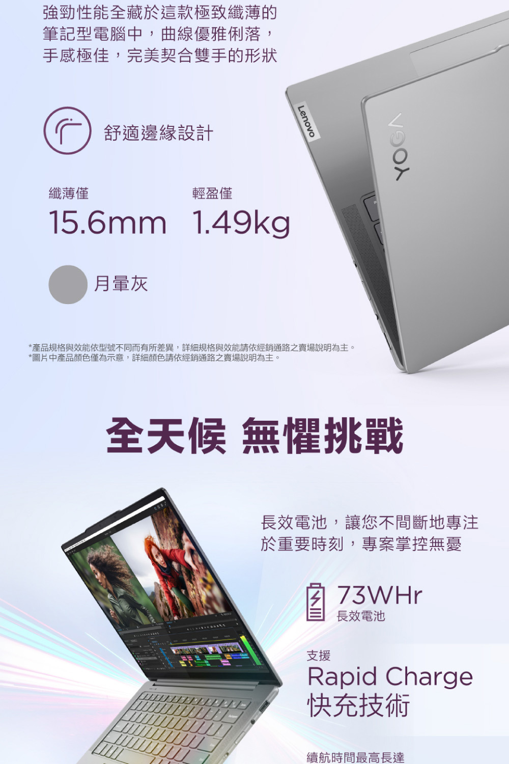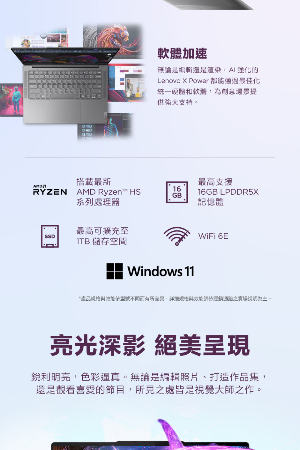 ●螢幕:14.5" 2.8K WQXGA+ (2880x1800) OLED 400nits Glossy, 100% P3, 100% sRGB, 120Hz, Eyesafe®, Dolby Vision®, DisplayHDR™ True Black 500, AGC Dragontrail™ Glass